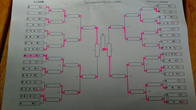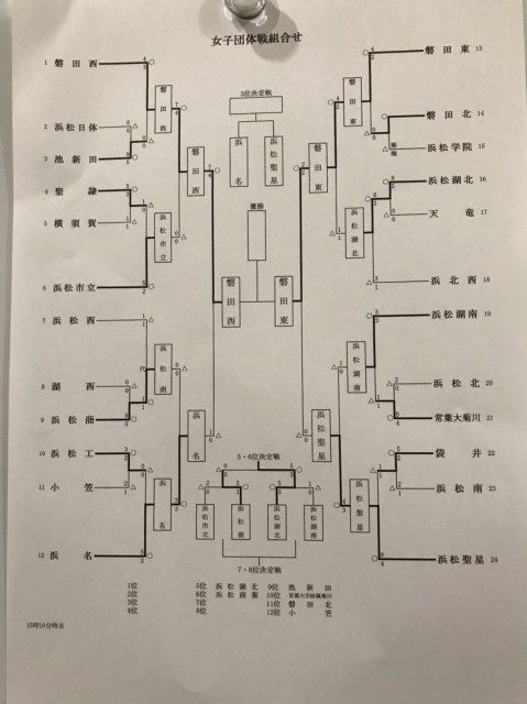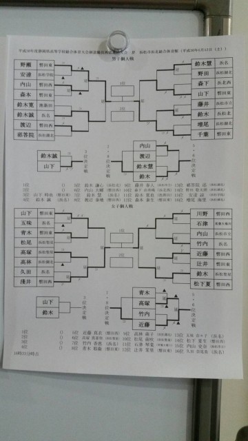 男子団体戦は、磐田東高校と浜名高校で決勝戦が行われ、3-1で磐田東高校が優勝です。